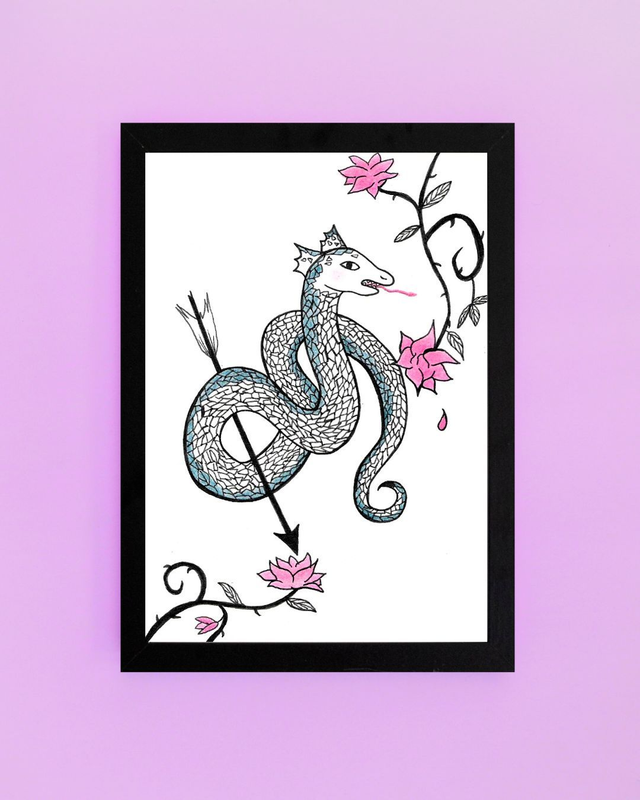 Dessin original à l'encre noire et aux crayons de couleur sur papier à grain 180 g