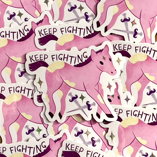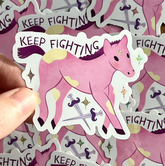 Sticker Keep Fighting - Petit cheval fantasy