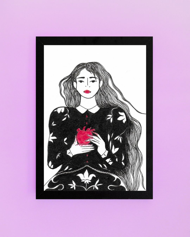 Dessin original à l'encre noire et aux crayons de couleur sur papier à grain 180 g