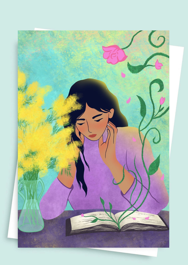 Carte postale Liseuse aux fleurs